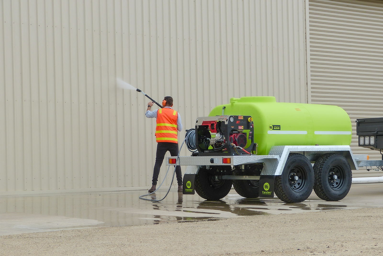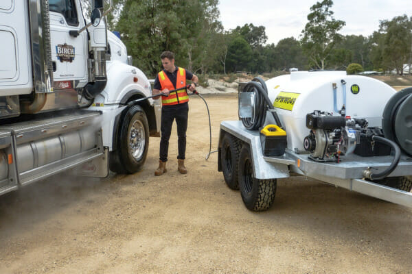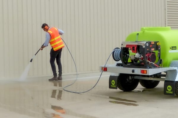 - Versatile: Equipped with powerful cold-wash pressure cleaners, our trailers are ready to tackle a wide range of cleaning tasks. For added versatility, consider upgrading to our firefighting pump option, which doubles for both washdown and dust suppression.