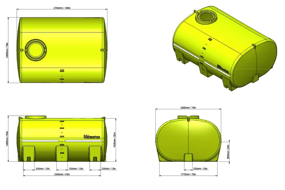 Easy to read calibration on side wall of tank for quick measurement of contents (when sight level tube fitted on tank)